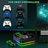 ⚡【Xbox Battery Charger RGB Light Indicates Charging Status】The xbox battery charging station has two types of LED indicator lights during charging: the red light indicates charging is in progress, and the green light indicates charging is complete. There is a circle of ambient lighting at the bottom of the charging station, with a total of seven lighting modes. Adjust the lighting mode through the RGB button and long press for 3 seconds to turn off the ligh