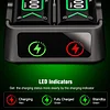 【Upgraded LED Indicator Design】 Know the charging status of each battery at a glance! Our charger has 4 top indicator lights that change color from red (charging) to green (fully charged/standby). The unique green LED breathing light design on the bottom lets you track charging status with ease.