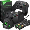 2021 new Xbox charging station with cool and technological appearance design. The controller charger dock with 2x2550 mAh rechargeable xbox one controller battery packs, compatible with Xbox One / Xbox Series X & S / Xbox One S / Xbox One X / Xbox One Elite controllers.