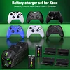 ⚡【Compatible for All Your Xbox Controller】The controller charger dock for Xbox one batteries pack is designed for Xbox One, Xbox One X, Xbox One S, Xbox One Elite, Xbox Series X, Xbox Series S. The charger and battery kit for Xbox controller is equipped with 4 controller battery back cover, 2 for X1/X/S/Elite and 2 for Xbox Series X and Xbox Series X. Meet players' a series of Xbox one controllers to charge needs
