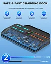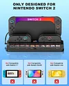 【Sleek Desktop Aesthetics】 Compact, all-in-one multi-functional design saves space while elevating your desktop style. Doubles as a charger and a display stand for your gaming gear.Storage solution holds 20 game cards, 4 controllers, and 1 Nintendo Switch 2 official Dock. Non-slip rubber pads are included on the bottom for stability
