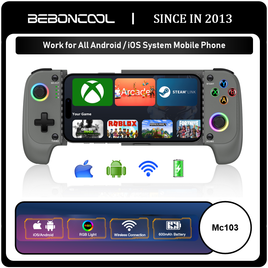 1.Wireless Bluetooth connection, compatible with iPhone and Android mobile devices, play any games and game platforms that natively support controllers on cell phones. For example: PS Remote Play, Xbox Cloud, Steam Link, GeForce Now, MFi Apple Arcade and other platforms and Call of Duty, Roblox, Minecraft and other games.