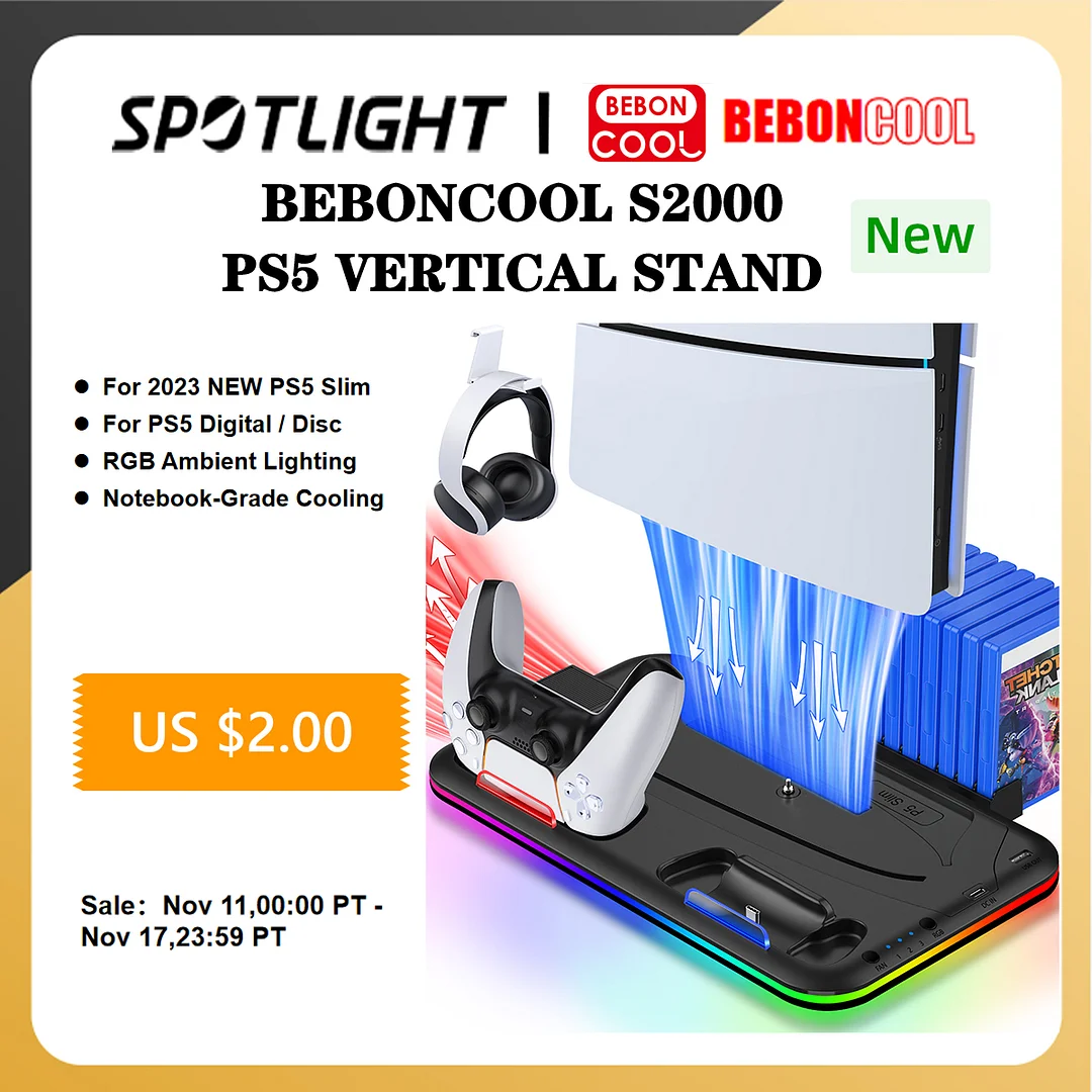 2 . There is a cooling fan with a built-in stand, which can draw hot air from the bottom of the ps5 console to make it cool.
