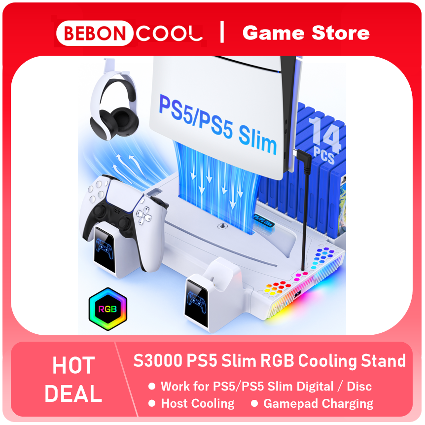 BEBONCOOL S3000 Vertical Stand For PlayStation 5 Slim/PlayStation 5 Digital/DiscCooling Station Controller Charger