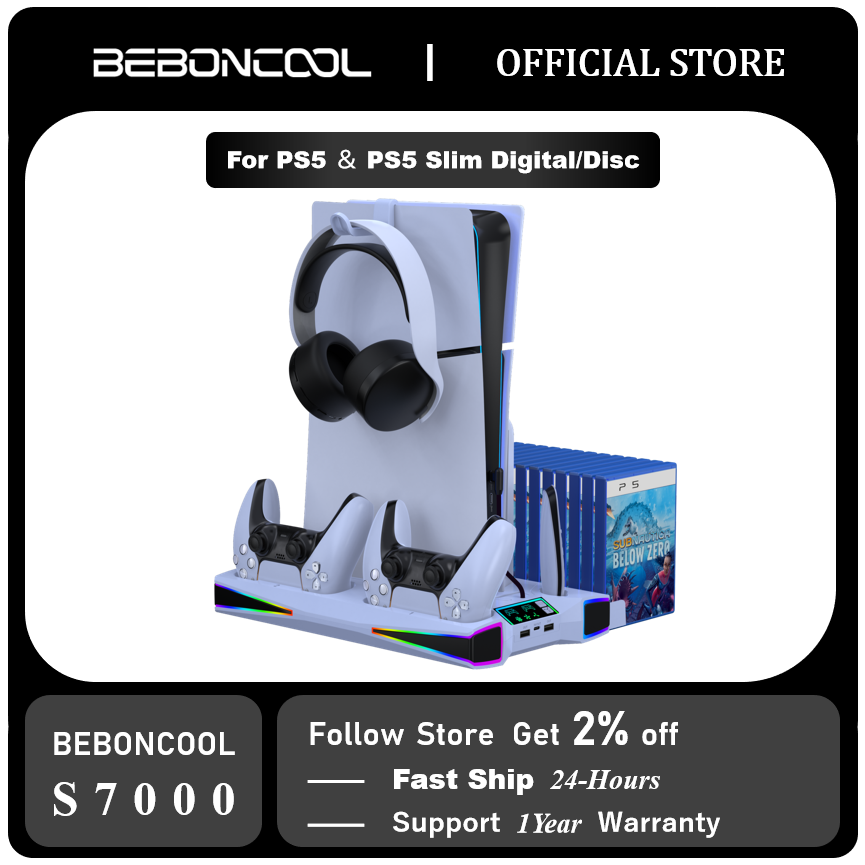 ❄️【Compact Cooling Stand for All PS5 Accessories】If you needed a multifunctional stand that would saves space and hold all ps5 accessories , the ps5 cooling system is the one for you. This ps5 stand with turbo cooling fan and dual controller charging station to fit any compact desk size, along with headset holder and console compatibility panels. Extra USB port for charging other devices and a removable 15 game slots to save desktop space when you don't need it.