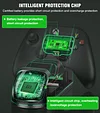 The controller charger station for Xbox with rechargeable battery pack takes 2.5 hours charging for 20 hours of power. The controller charger station for Xbox built in intelligent protection chip, prevent to be over currents, over heating, over voltage, short circuit.