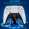Comes with a long Type-c cable for dual ps5 controller fast charging, it charges 2 ps5 dualsense controllers in 2.5 hours from completely dead to fully charged. Would save you a lot of time during long sessions of gaming. Great solution for 2 ps5 dualsense controller charging and always have a backup charged controller on the ps5 charging dock