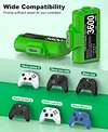 The battery packs are compatible with all Xbox One and Xbox Series controllers, ensuring no issues with compatibility. The package includes 4 battery covers: 2 for Xbox Series controllers and 2 for Xbox One controllers.