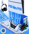 🌀 【YOUR IDEAL PS5 ACCESSORIES】PS5 station is perfectly compatible with NEW PS5 Slim/Disc/Digital/Dual-sense controller/Digital/Disc console.The 3 extra USB hubs allow you to charge other devices, like mouse, keyboard, headset etc. With a sleek and tidy design, PS5 charging station saves much space to keep your all PS5 accesories like console, 2 Dualsense controllers, 13 game discs, headset and Playstation media remote organized. Your must-have PS5 organizer!
