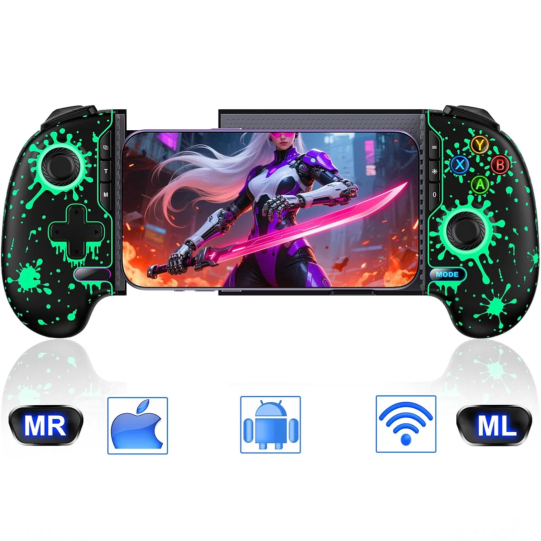 Our game controller for iphone can be programmed into A B、X、Y、L、L2、R、R2、 Up, down, left, right L3、R3、+、- The key. Each key can be assigned up to 16 key values.