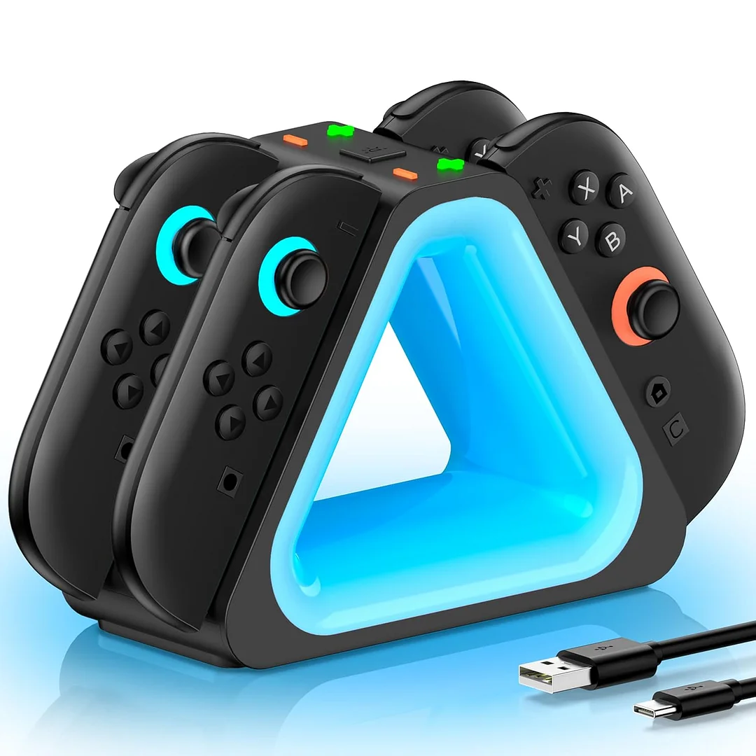 Safe Charging:The switch 2 remote charger stand adopts the most advanced technology, and the intelligent chip ensures the safety of charging the battery overnight, with overcharge / overvoltage / overcurrent / overheating / short circuit protection