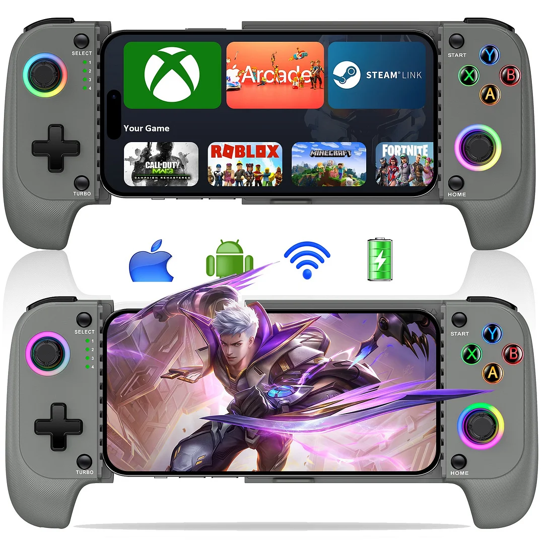 【Play Any Game APP that Supports Controllers】 The phone controller allows you to play any game and gaming platform that natively supports controllers on your phone, suitable for Apple/Android platforms such as Xbox Cloud, Steam Link, GeForce Now, MFi Apple Arcade, as well as Call of Duty, Roblox, and other games. The Mobile controller bring a unique gaming experience, allowing players to enjoy gaming time anytime, anywhere