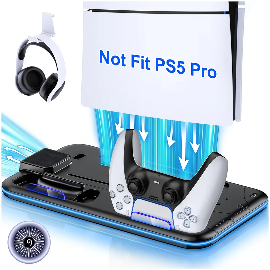 NinJoyGo PS5 Stand, PS5 Cooling Station with Controller Charging Station for PS5/PS5 Slim Disc Digital Console, PS5/PS5 Slim Accessories-Cooling Fan, Headset Holder, 15 Game Slot for PlayStation 5