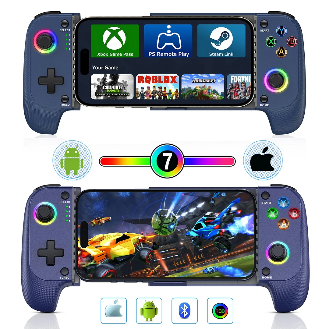 the buttons of the controller for phone are large, with an intuitive and reasonable layout, with Turbo function, three speeds adjustable: 5/12/20 times per second. At the same time the phone gaming controller has a cool and stylish RGB lighting effects, dazzling color change → red → green → green → blue → purple → orange → off, the light can be memorized, adding to the atmosphere of the game, you can choose the corresponding light effects according to their needs.
